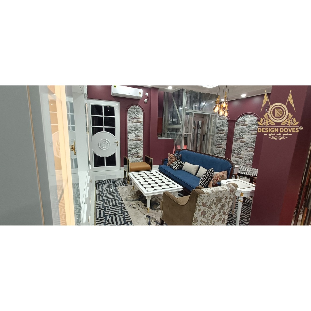 Living room interiors by a studio like Design Doves in Noida are typically styled as upscale, glamorous spaces that blend modern contemporary furniture with rich materials and curated decor.​ Style and Concept Design Doves describes its work as bringing fashion-house glamour and luxury into everyday living, including villas, bungalows, penthouses and apartments. Their interiors meld colour, sophistication and a blend of Indian, French and modern contemporary furniture, giving living rooms a cosmopolitan, “soulful” vibe rather than a purely minimalist look.​ Typical Living Room Features For a living room, this approach usually means: Statement sofas and accent chairs with tailored upholstery and refined silhouettes.​ Layered materials such as stone, glass, metal work, rugs, fabrics, trims and wall coverings to create depth and a luxurious feel.​ Carefully selected lighting (chandeliers, wall lights, floor lamps) that adds both drama and warmth to the seating area.​ Planning and Customisation Design Doves describes its projects as “bespoke” interiors, meaning layouts, furniture selection and decor in the living room are planned around the client’s lifestyle and preferences. As a turnkey interior design and manufacturing studio, they can design, build and supply custom furniture and decor elements so the living room reads as a cohesive, tailored space.​ If you share your room size, preferences (modern/classic, light/dark, budget), a living room description can be written specifically for your home in the Design Doves style.