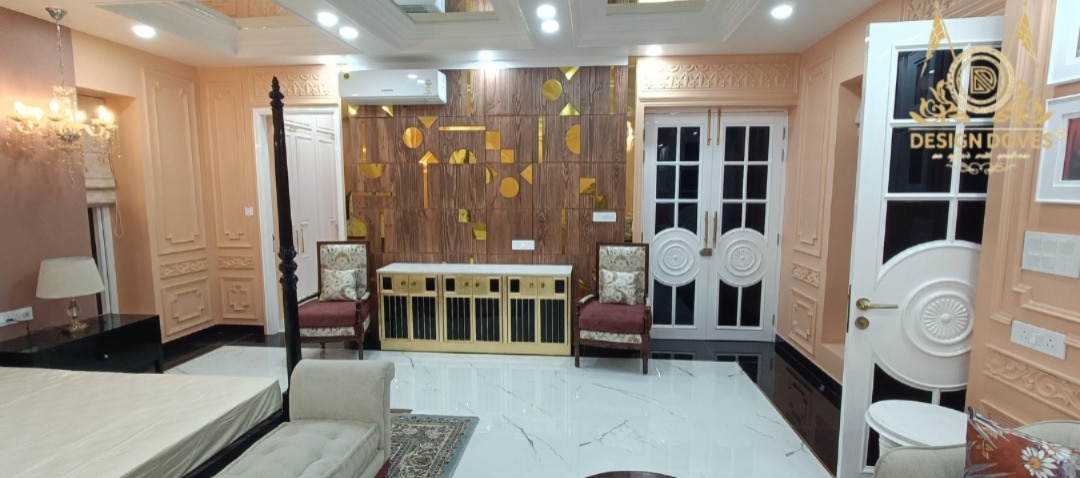 Bedroom interiors by a studio like Design Doves in Noida are typically luxurious, tailored spaces that balance comfort, mood lighting and refined detailing.​ Overall Style Design Doves positions itself as a bespoke interior and manufacturing studio, so bedrooms are usually custom-designed to the client’s lifestyle rather than “one style fits all.” The look often blends modern contemporary lines with layered textures and a fashion-inspired sense of glamour seen in their living and full-home projects.​ Typical Bedroom Features In this design language, a bedroom usually includes: A statement bed with an upholstered or paneled headboard, coordinated side tables and built-in or custom-made wardrobes for a seamless look.​ Soft materials and finishes such as fabric wall panels, rugs, curtains and trims, plus warm layered lighting (ceiling lights, bedside lamps, indirect lighting) to create a calm, hotel-like ambience.​ Planning and Customisation As a turnkey studio with its own manufacturing, Design Doves can design and execute complete bedroom interiors—from layout planning and storage solutions to furniture, wall finishes and decor—under one roof. Clients typically connect via phone, WhatsApp or a website enquiry for site visits, concept discussions and detailed bedroom design proposals specific to their space.​